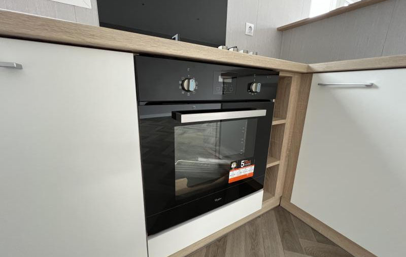 salon z aneksem kuchennym: duże okna od frontu, w pełni wyposażona kuchnia (4-palnikowa kuchenka, piekarnik, zabudowana lodówka, zamrażarka i zmywarka);