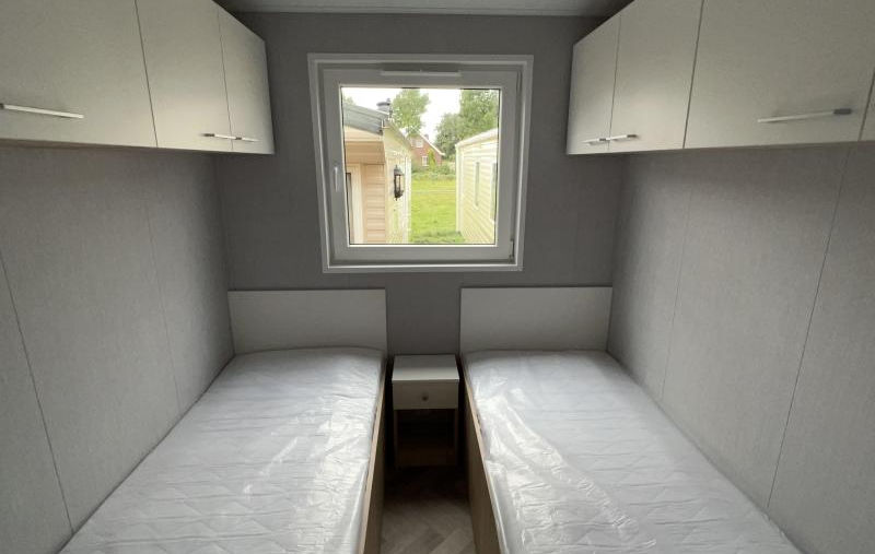 sypialnia mała: dwa pojedyncze łóżka, stolik nocny oraz szafka nad łóżkami;