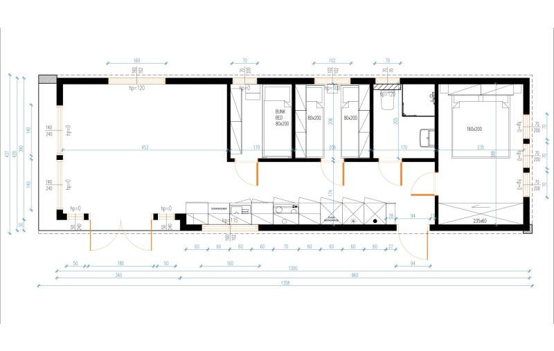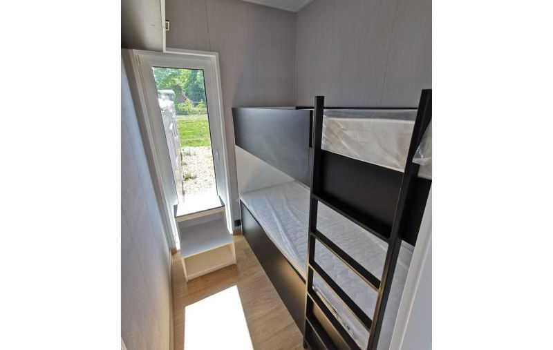 sypialnia trzecia: łóżko piętrowe i szafy;